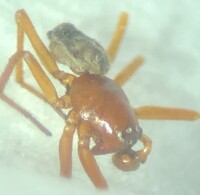 Male Total length about 2.3 mm.; cephalothorax 1.6 mm. long and 1.1 mm wide. Female.-Totallength 2.4 to 2.9 mm.; cephalothorax 1.1 to 1.3 mm. long and 0.8 mm. wide.