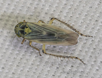 | Macrosteles bifurcatus | | 18060 | 2025-10-15 | Susan Reeves | 1 | Adult | Sheet with light in small opening of clearing between trees, largely hardwoods.rnThere were LOTS of hoppers at the bottom of the sheet, esp. Plesiommata tripunctata. May have been more than one Macrosteles but only photoed one. Just learning what is common, and not! | Eno River Confluence Park | | 7:55pm, on white sheet with LepiLED (combo UV/LED) | | 01_Photo |  Name suggested by hopperdude215. rnSheet with light in small opening of clearing between trees, largely hardwoods.rnThere were LOTS of hoppers at the bottom of the sheet, esp. Plesiommata tripunctata. May have been more than one Macrosteles but only photoed one. Just learning what is common, and not!