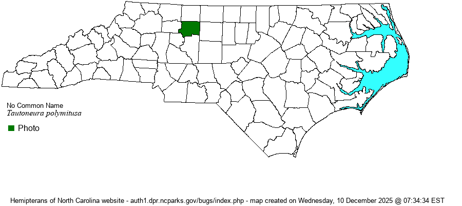 Rare, recorded from a single county in the Piedmont, but this species is expanding and likely to turn up in other counties.