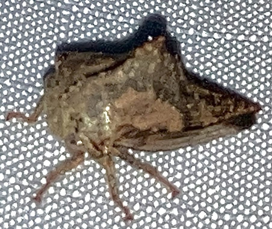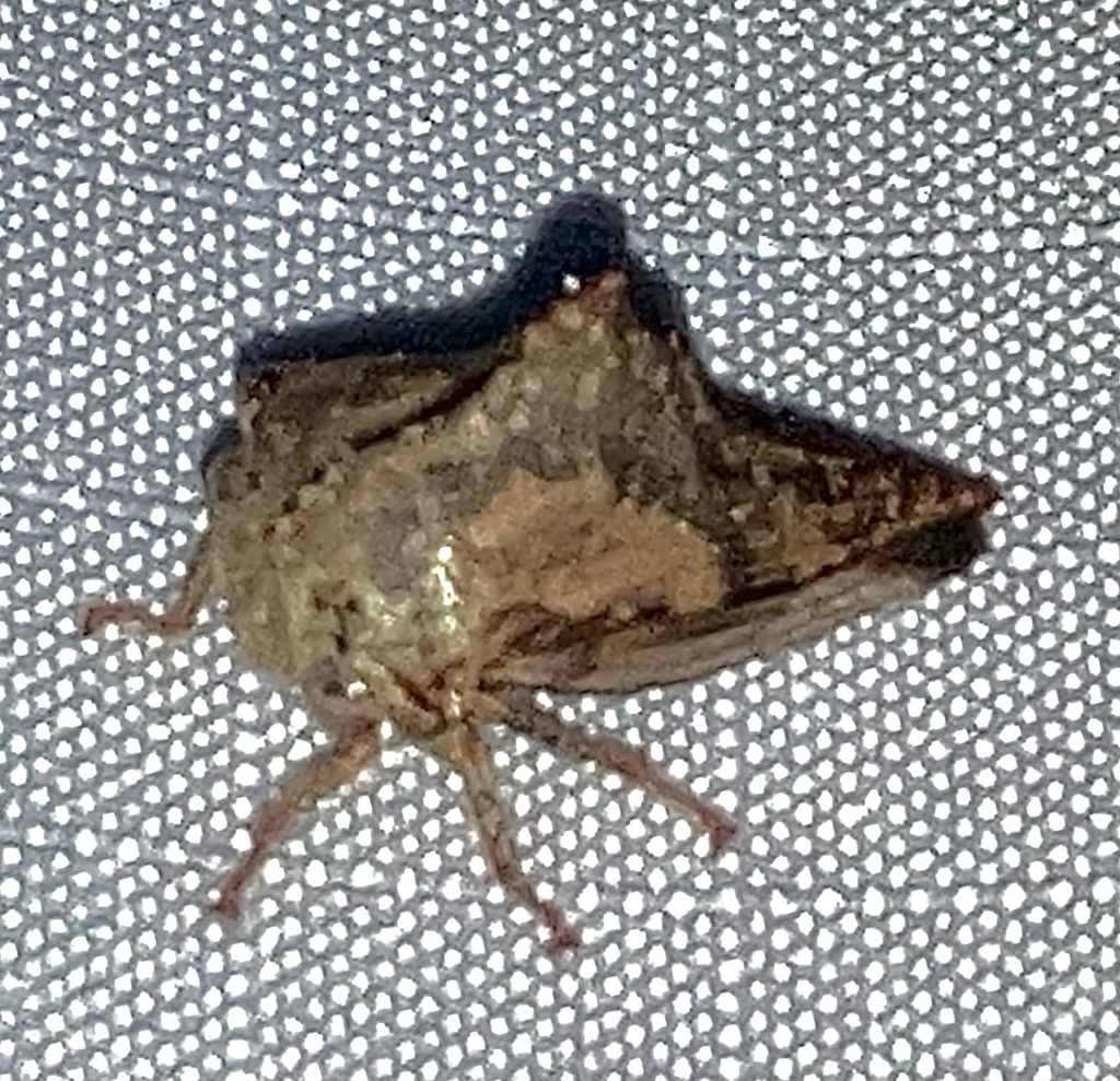 Description: A pale almost uniformly gray color in females, while more mottled with brown on the metopidium and crest in males. The pronotum is long, slender acute, and the crest is long and low; the anterior lobe of the crest is an acute pyramid, distinctly one-half higher than the horizontal posterior lobe. The posterior margin slopes into the pronotum. The anterior and posterior lobes are inflated, and the humeral angles of the crest are strongly olbique and almost twice longer than wide, with bluntly rounding apices. Males are 8 mm long, while females are 10 mm long, 7 mm wide, and 4.5 mm high. (Kopp & Yonke, 1974)