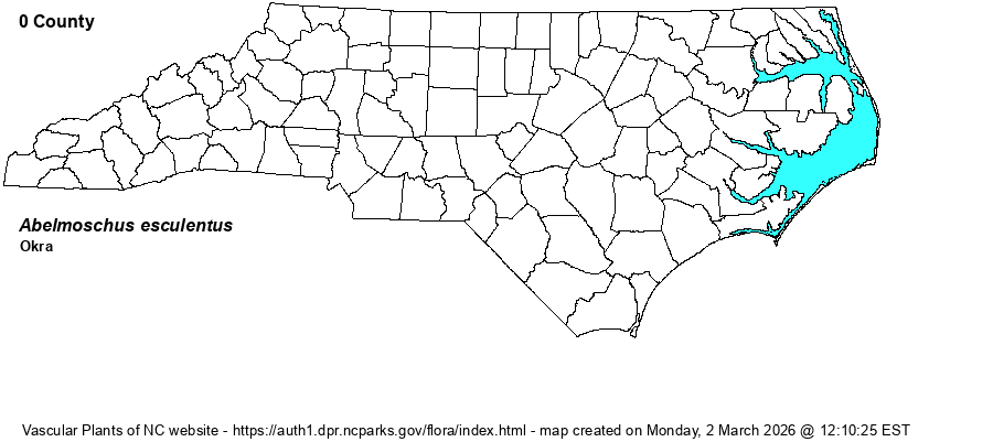 | Account for Okra - Abelmoschus esculentus (L.) Moench | Only member of Abelmoschus in NC. | |||||||||