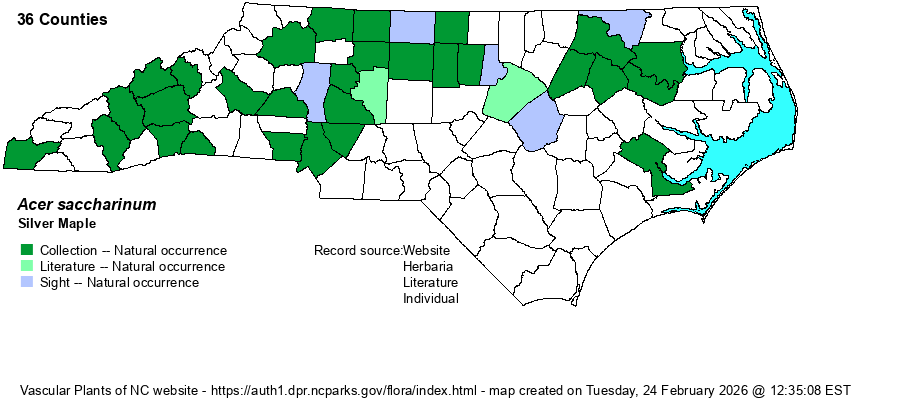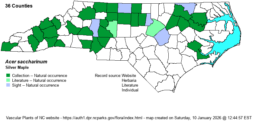| Taxonomic Comments | Weakley (2018) mentions that a hybrid with Red Maple (A. rubrum) has been collected at scattered sites in the Southeast.