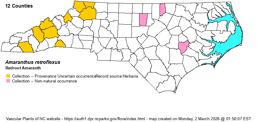 | Distribution | Primarily in the Mountains; also Orange, Vance, and Lenoir counties.