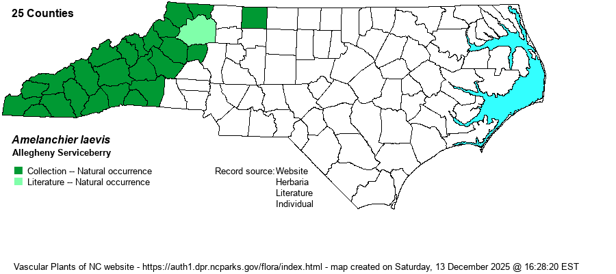 | Habitat | This serviceberry favors rocky forests and high elevation dry or mesic forests, and also is found at shrub balds or bald margins. The very similar Downy Serviceberry (A. arborea) is the more numerous Amelanchier in the lower parts of the Mountains. |