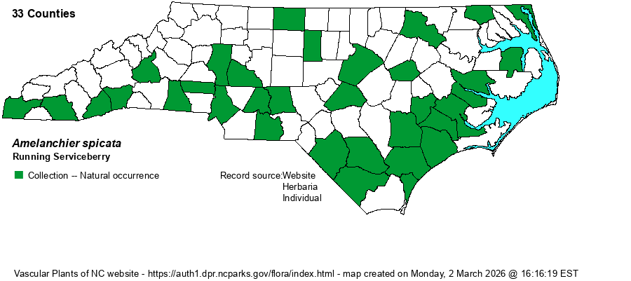 | Taxonomic Comments | Many references, such as NatureServe Explorer, name the species as Amelanchier stolonifera. However, many earlier (i.e., RAB 1968) and later (e.g., Weakley 2018) references use A. spicata.