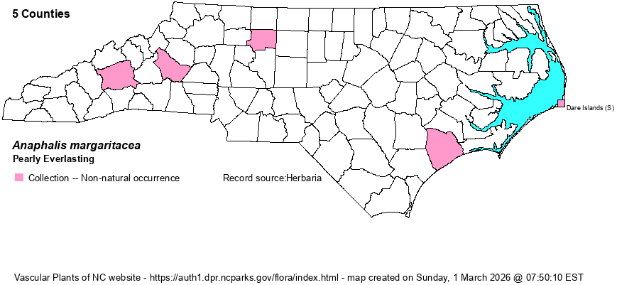 | Habitat | Roadsides, fields, back dune flats, mixed pine forest, "Cliffside Lake" (Forsyth Co.). Often cultivated, formerly at least, but rarely escaped. | |