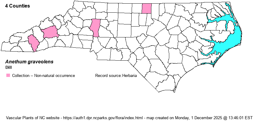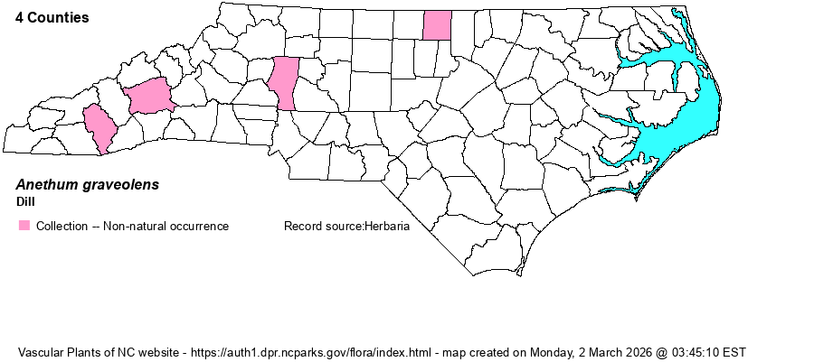 | Taxonomic Comments | This is the only species in the genus Anethum, and thus there are not several species of Dill; the single word common name suffices.
