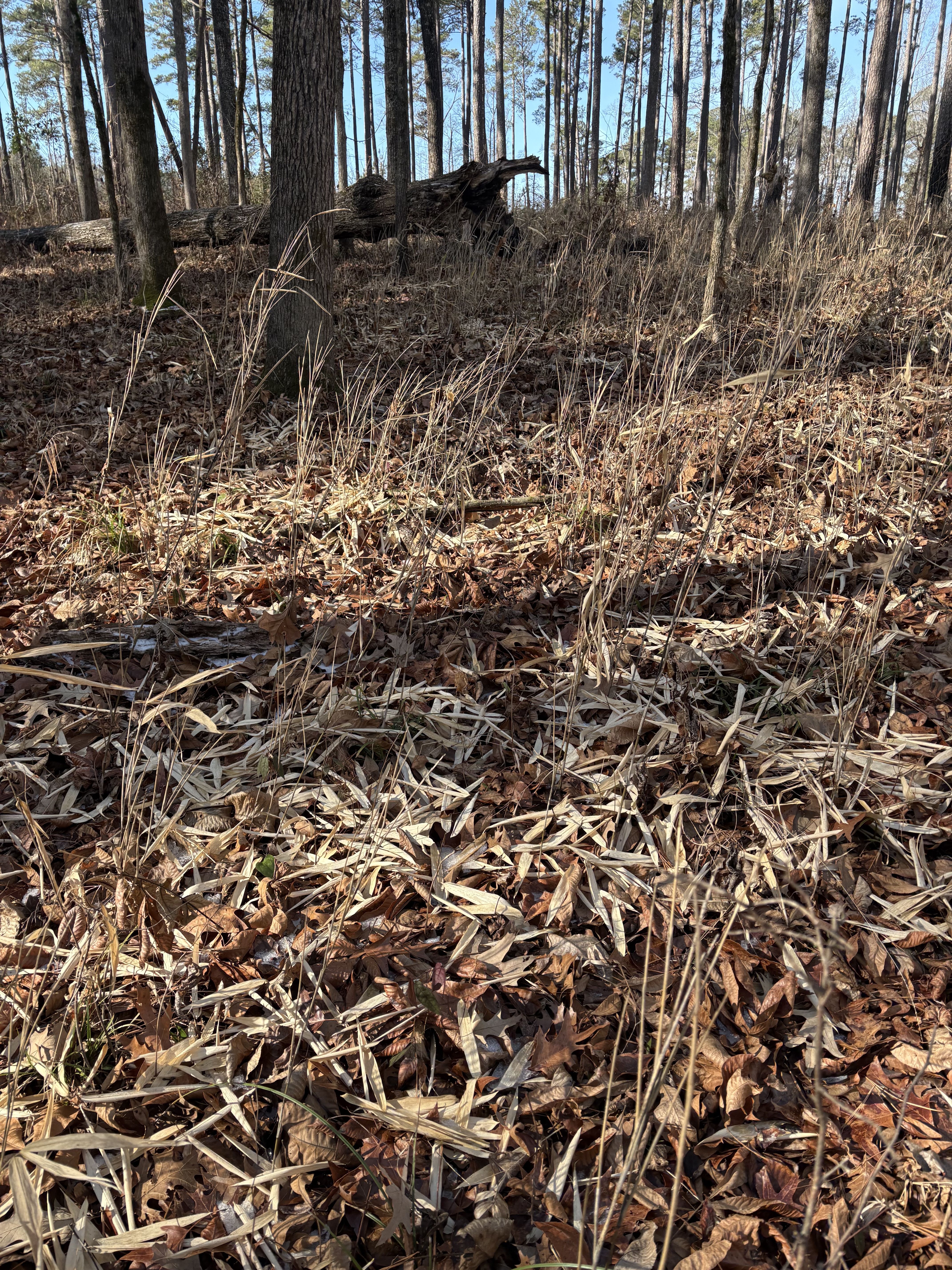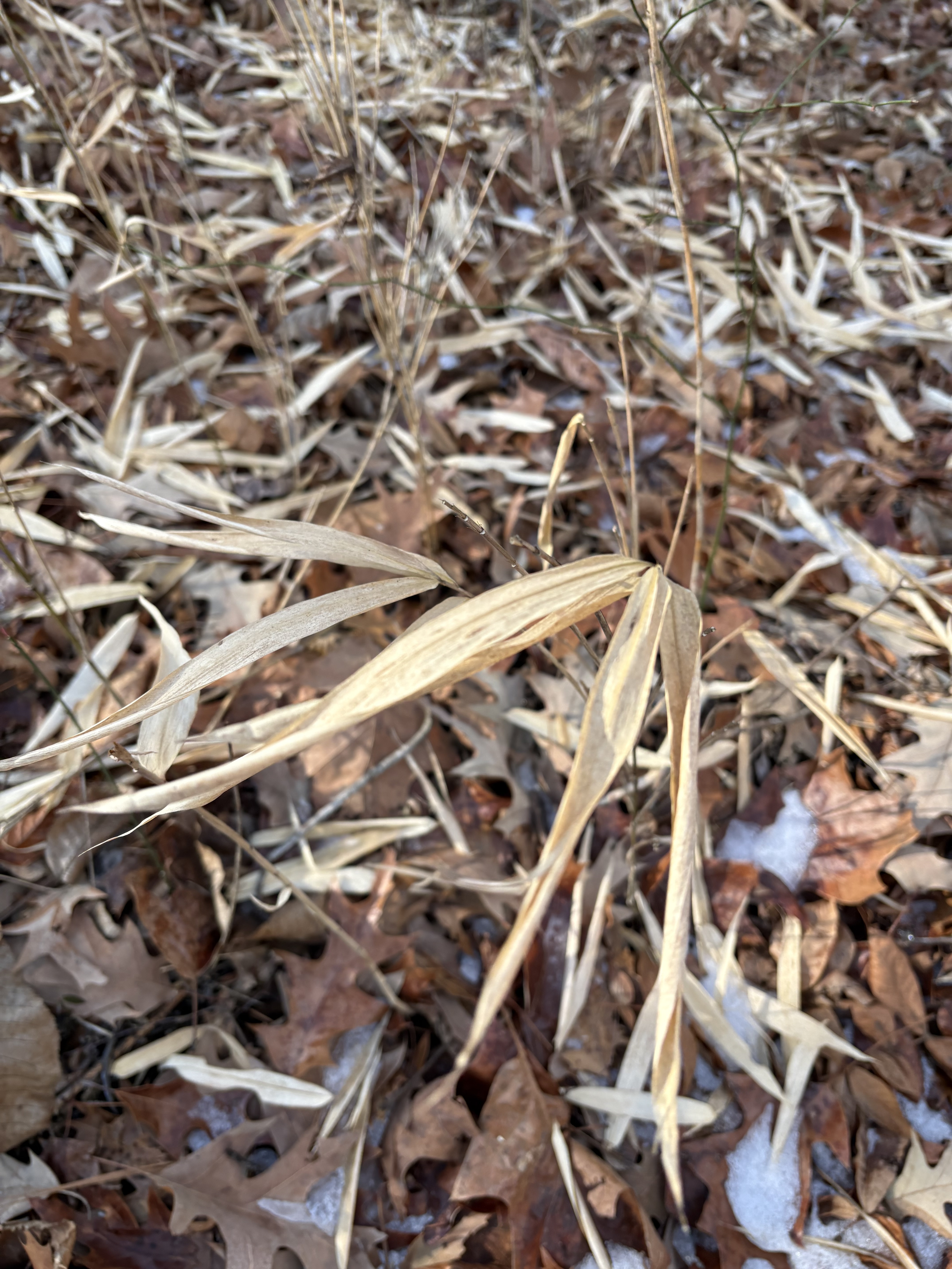 | Identification | This is the knee-high (rarely head-high) and deciduous cane that grows in uplands in the southwestern part of the state, on forested slopes. It always occurs in extensive stands. It seldom reaches 3’ tall, and is mostly 1-2’ tall. Other canes occur mainly in bottomlands, swamps, along creeks, or in wet streamheads and are normally 3-10' tall; also, they remain green all winter. As this species was only described in 2006, though it was unofficially known for decades as a “different” and upland cane, many biologists in the eastern half of the state are likely not familiar with it. However, it is normally not hard to find in the southwestern part of the state, once you are aware to look for stands of cane growing on upland slopes. See also the account for Pseudosasa japonica. | |