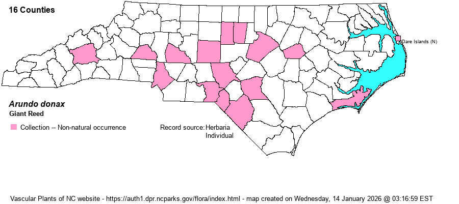 | Habitat | Moist to wet soil of roadsides, streambanks, ditches, waste ground. In the Old World, used extensively for thatching, building material, musical instruments, mats, screens, stakes, etc. | |