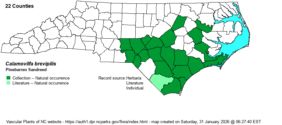 | Taxonomic Comments | For many decades treated as Calamovilfa brevipilis, but recent molecular research suggests that this genus is nested within Sporobolus. However, we will follow Weakley et al (2025) and retain it as Calamovilfa.