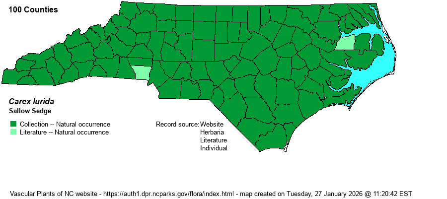 | Other Common Name(s) | Incorrectly named as Shallow Sedge by many websites and references. "Sallow" means "of an unhealthy yellow or pale brown color", presumably referring to the female spikes. Also named as Lurid Sedge. | |