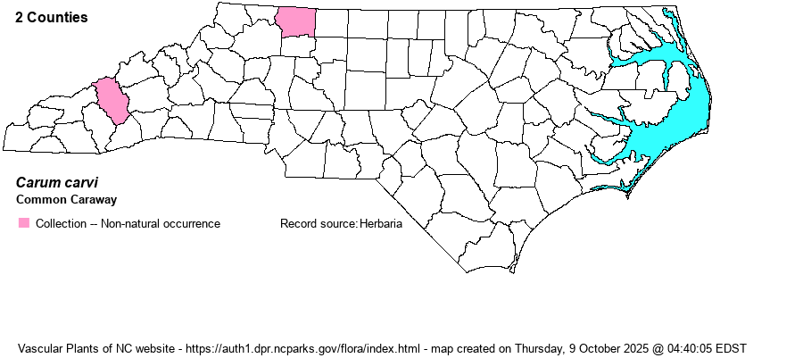 Account for Common Caraway - Carum carvi L. | Only member of Carum in NC. |