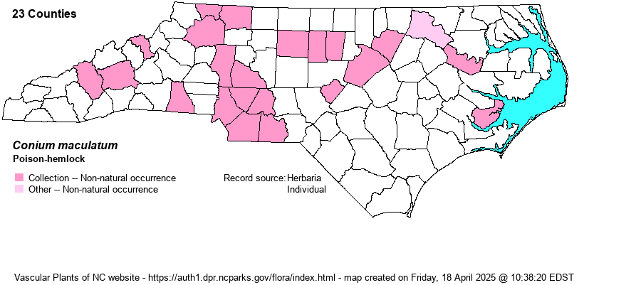 | Distribution | Mostly in the Piedmont, scattered in the Mountains, scarce in the Coastal Plain. First collected in 1949 in waste ground west of Greensboro, Guilford County.