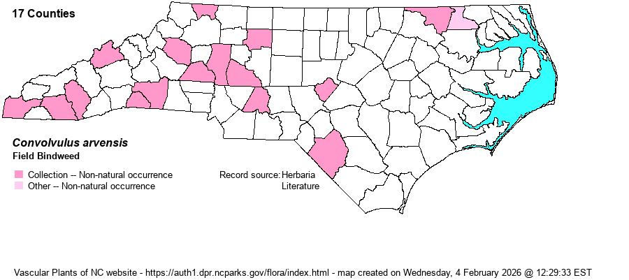 | Taxonomic Comments | Unlike the other Convolvulus species on the website, this Old World species has long been, or always been, named as Convolvulus arvensis.