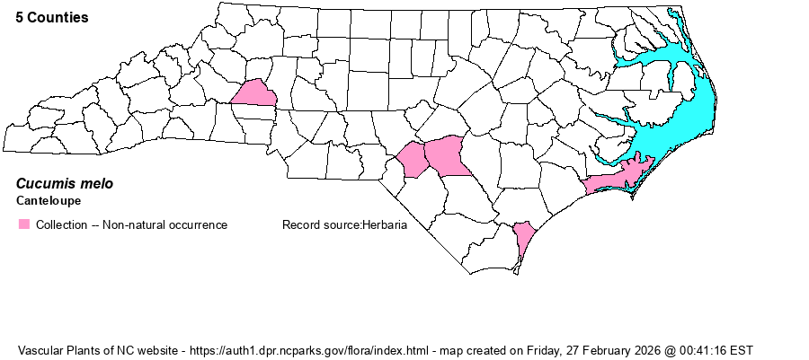 | Distribution | Collected (away from obvious planting or cultivation) from 5 counties, from Catawba County to Carteret County.
