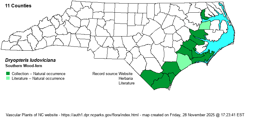 This is a Southern Coastal Plain species, ranging north to eastern NC, south to southern FL, and west to eastern TX.