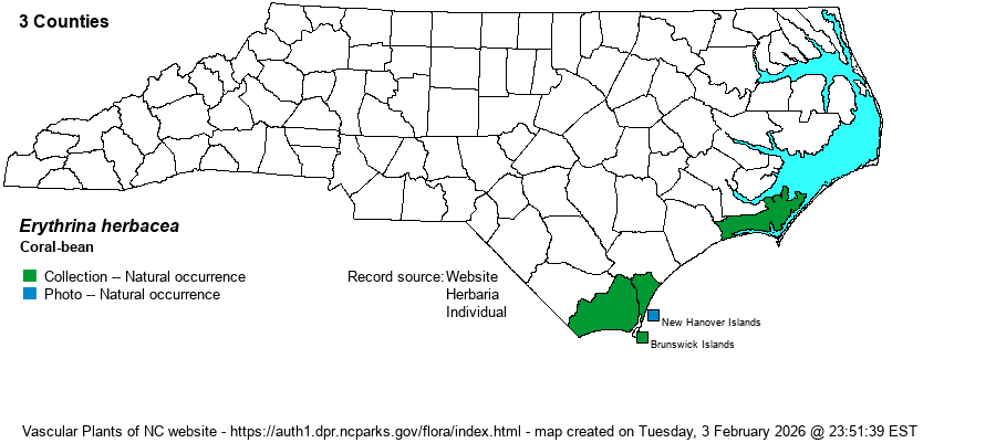 | Distribution | Strictly along the southern coast, of Brunswick and New Hanover counties. Formerly known from Carteret County.