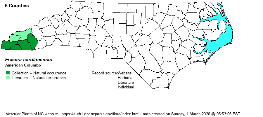 | Taxonomic Comments | Earlier references named the species as Swertia caroliniensis.