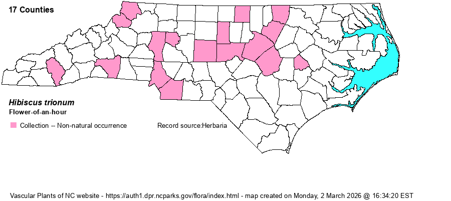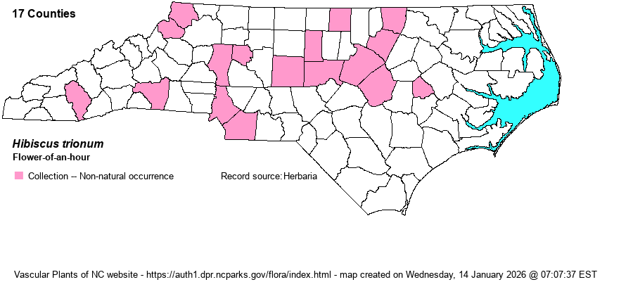 | Distribution | Scattered from the Mountains to Greene County in the Coastal Plain; most widespread in the Piedmont.