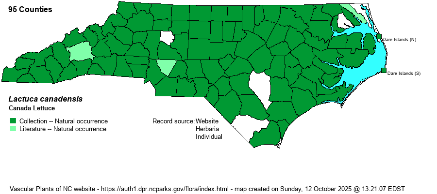 Lactuca canadensis | > | Lactuca canadensis var. canadensis | Flora of West Virginia | |