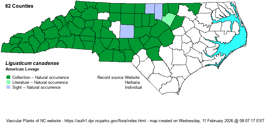 | Distribution | Throughout the Mountains and Piedmont, and extending into the upper Coastal Plain only along a few brownwater river floodplains.