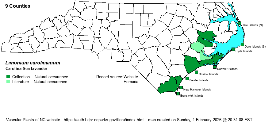 Account for Carolina Sea-lavender - Limonium carolinianum   (Walter) BrittonOnly member of Limonium in NC.