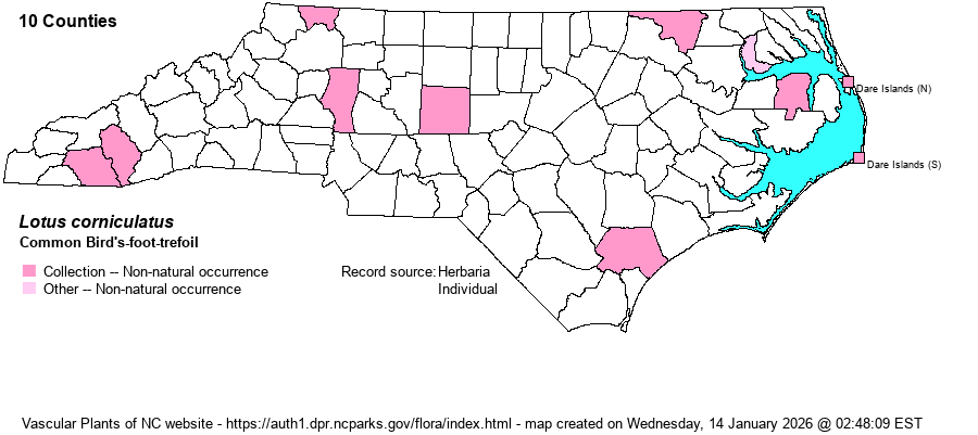 | Distribution | Scattered across the state. First collected from a pasture in Iredell County in 1937. Apparently slow to colonize new sites. It is possible that some NC records may refer to L. tenuis, which by some authors is only varietally distinct; specimens need to be re-examined.