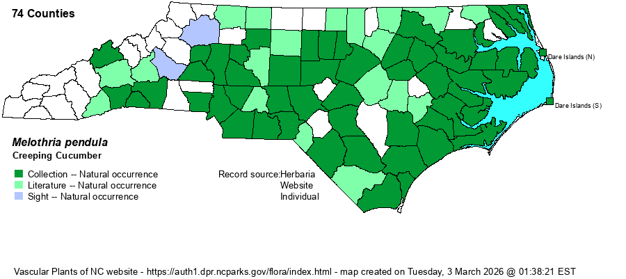 | Distribution | Throughout the Coastal Plain. Present over most or all of the Piedmont; only a few Mountain counties, where scarce.