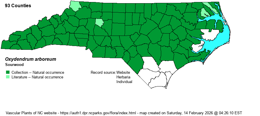| Taxonomic Comments | This is the only species in the genus Oxydendrum.