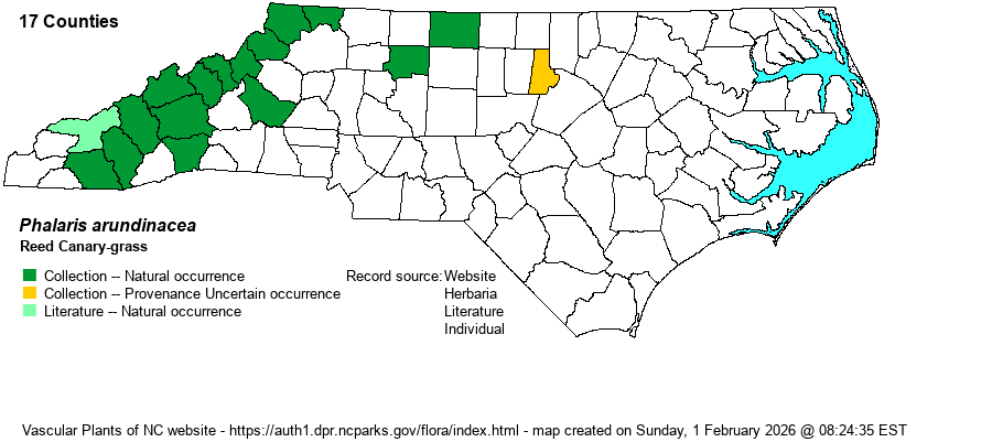| Distribution | Mountains and northern Piedmont only. The record from Durham County is from a "sewage pipeline on campus"; the website editors map this as Provenance Uncertain. A record from Orange County is from a nursery and is thus not mapped.