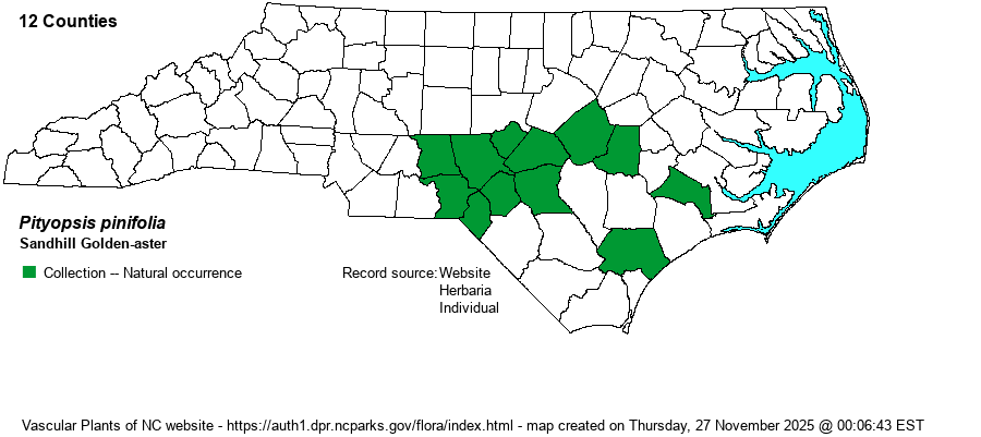| Taxonomic Comments | Formerly treated as Chrysopsis pinifolia, and before that as Heterotheca pinifolia.
