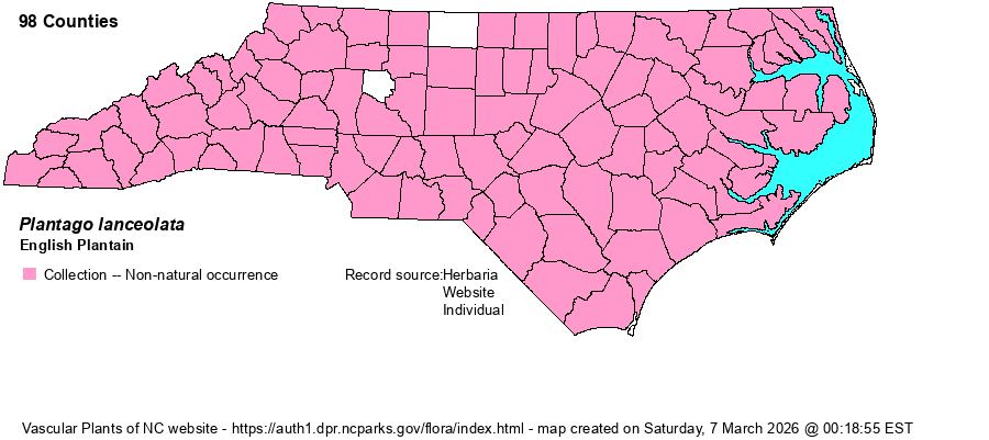 | Habitat | Roadsides, lawn weed, campus weed, fields, barnyards, meadows, trailsides, clearings. | |