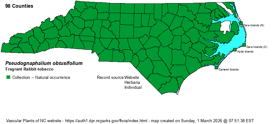 | Pseudognaphalium obtusifolium | = | Gnaphalium obtusifolium var. obtusifolium | Gleason and Cronquist (1991) | |