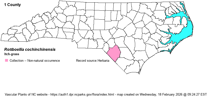 | Distribution | So far documented from Robeson County only: soybean field, 1.7 miles NW of Rowland, 5 Nov. 1984 (D.T. Patterson s.n. (DUKE). Other collections from the same site later in the same month.
