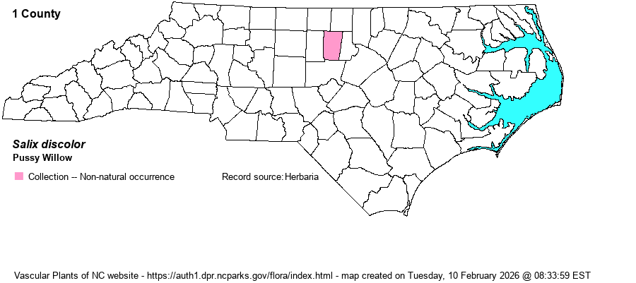 | Distribution | Due to the long habit of treating S. discolor in the broad sense (including S. humilis and S. occidentalis), we here include only those specimens annotated by G. Argus as S. discolor. Out of 18 sheets at SERNEC, only 1 is so annotated: Orange County, Mason Farm on Morgan Creek, 1 August 1950, Eller 56 (WCUH). Argus (1986) cites this very specimen.