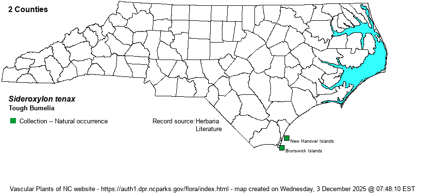 | Taxonomic Comments | This and other species formerly in the genus Bumelia have been moved to the genus Sideroxylon in recent decades.