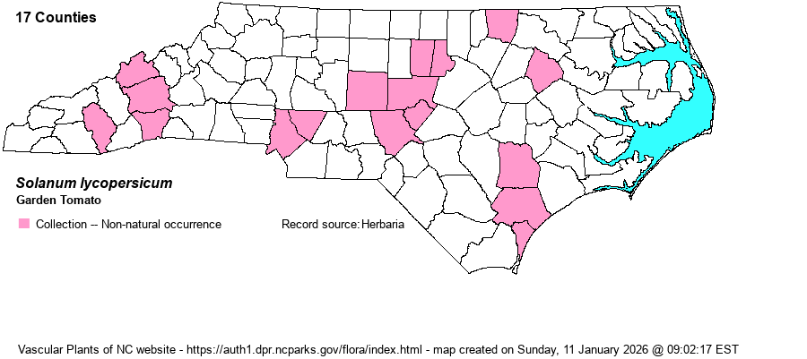 | Distribution | Scattered across the state, with gaps. A collection (many herbaria) from Pitt County was actually in Edgecombe County.