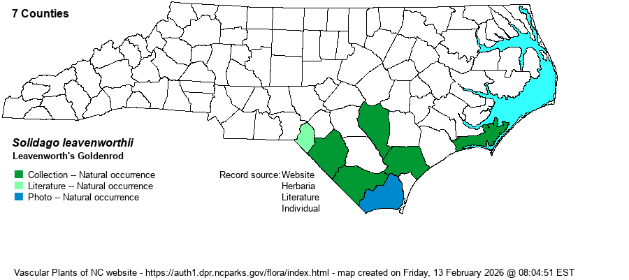 | Abundance | Very rare to rare and local; declining in the state, with barely 4-5 extant sites, including one discovered in Brunswick County in late 2020 and another in Pender County in 2021. One specimen record noted that there were at least 25 plants present. This is a State Endangered species. | |
