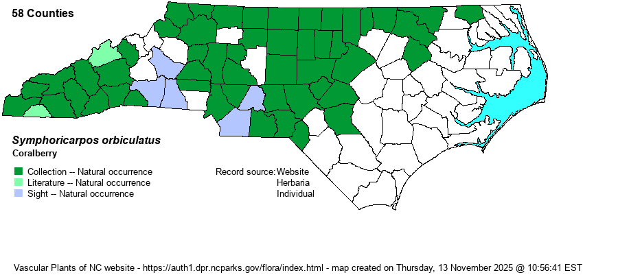 | Habitat | This is a species primarily of circumneutral soils, but usually where mesic to somewhat dry. Habitats include Basic Oak-Hickory Forest, Basic Mesic Forest, rich floodplain forests, mafic glades such as Diabase Glade and Xeric Hardpan Forest, and also in thickets on such soils. It can occur in weedy pastures and brushy areas, and it does show some tendency to becoming weedy, especially as it is rhizomatous. Because it has a fleshy fruit (berry), it is likely that birds distribute the species into weedy spots where it may seem to appear to be locally “exotic”. | |