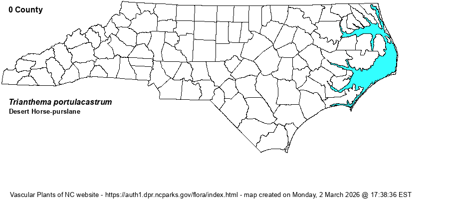 | Distribution | FNA and BONAP map it for NC, but without location. Weakley (2018) maps it in the Coastal Plain. There are no specimens at SERNEC. RAB (1968) cites only a single record from a railroad yard in Charleston County, SC.