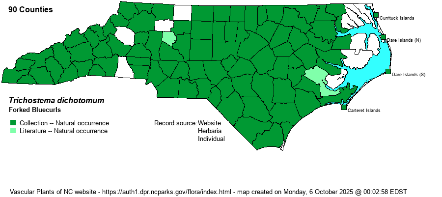 Distribution | Occurs statewide, though possibly absent from the mainland of a few eastern Coastal Plain counties (it is present on the Outer Banks).