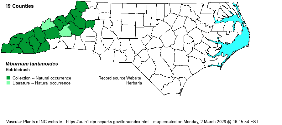 | Taxonomic Comments | For much of the last century, the species was named as Viburnum alnifolium. Nearly all more recent references have it now as V. lantanoides.