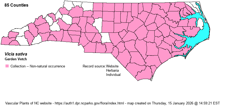 | Taxonomic Comments | The various entities within Garden Vetch have been treated in the past in different ways, as varieties, subspecies, or at least 2 species. We lump them here for convenience. A synonym is V. angustifolia.