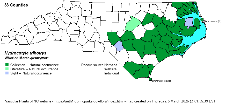 | Taxonomic Comments | Older references listed this as a variety of H. verticillata, named as H. verticillata var. triradiata. NatureServe still does.