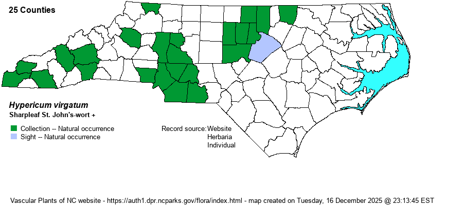 | Hypericum virgatum | < | Hypericum denticulatum var. acutifolium | Gleason and Cronquist (1991) | |