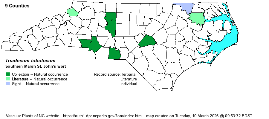 | Taxonomic Comments | Weakley (2020) changed his position and the pink-petaled Hypericum species revert to Triadenum.