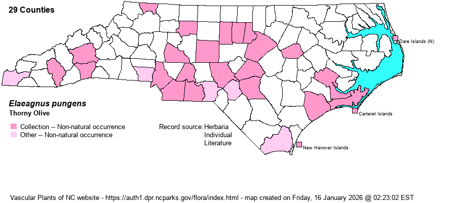 | Habitat | Roadside thickets, disturbed woods, maritime dunes, bottomlands, alluvial woods, tidal swamp forest (Onslow Co.). Extensively planted as a privacy hedge in recent decades. Normally not a problem species, as far as escaping into natural habitats. |