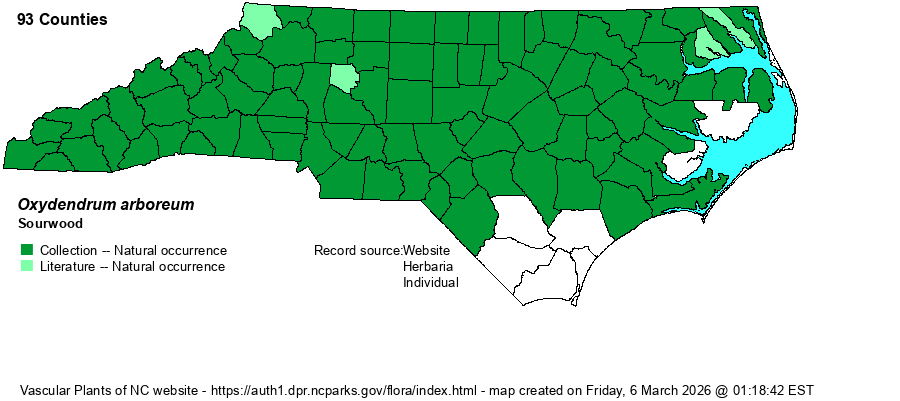 | Taxonomic Comments | This is the only species in the genus Oxydendrum.