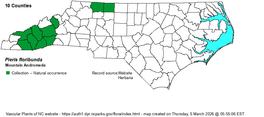| Other Common Name(s) | Evergreen Mountain Fetterbush, Mountain Pieris, Mountain Fetterbush (used for Eubotrys recurvus). Mountain Andromeda is not a widely used common name, and not as frequently used as is Mountain Fetterbush, but the website does not allow two species with the same common name. In reality, the species does not have a common name that has really stuck among many references and field guides. | |