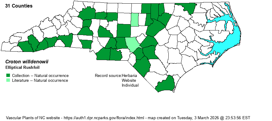 | Taxonomic Comments | Synonyms include Croton michauxii var. elliptica and Crotonopsis elliptica.